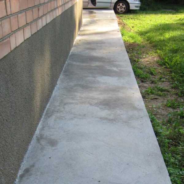 Самая основная часть здания – фундамент подвергается наибольшему разрушающему воздействию от атмосферных и грунтовых вод. Влага, которая проникла в грунт около здания, по периметру которого не проложена отмостка, проникает в подвал, распространяется по стенам, что приводит к появлению плесени, разрушению конструкций здания. Устройство отмостки обязательно для любого здания! Отмостку, как правило, делают шириной 0,7-1 метр вокруг здания по его периметру с уклоном от здания 1-10 градусов.